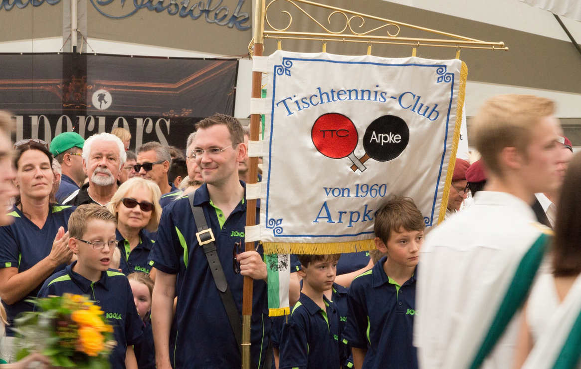 Neben dem Fussballer und Schützen Karsten Luschnat (König) stellt ein weiterer Sportverein aus Arpke einen König. Marcel Haak, u.a. im Vorstand des TTC Arpke, errang in diesem Jahr den Titel des Volkskönigs. Neben dem Tischtennisschläger kann er also auch mit dem Gewehr treffsicher umgehen.